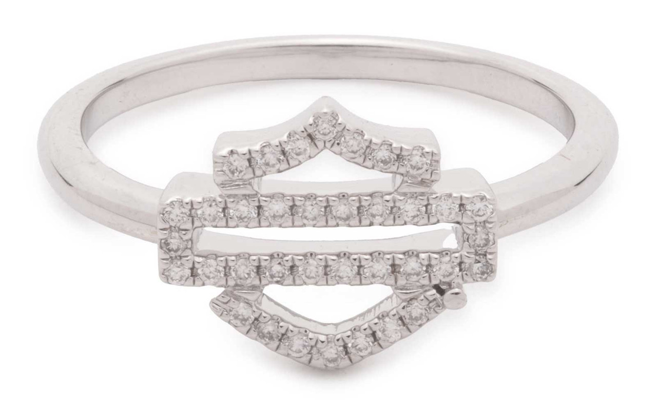• Magnifique logo Bar & Shield ouvert accentué de diamant de synthèse.