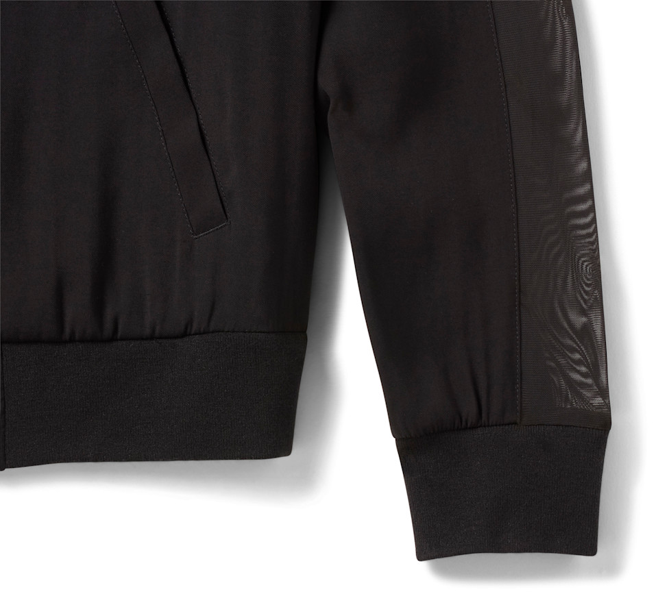 • Détails de conception : Blouson aviateur. Manches à rayures contrastantes en maille transparente. Col, poignets et taille en maille côtelée. Patte de suspension.