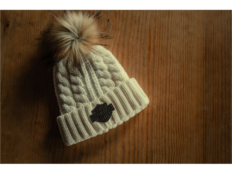 Bonnet à pompon avec patch en cuir