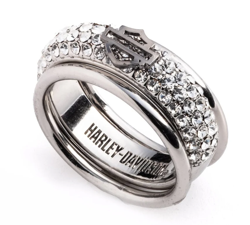 - Bague en cristal étincelant ornée du logo intemporel Bar & Shield