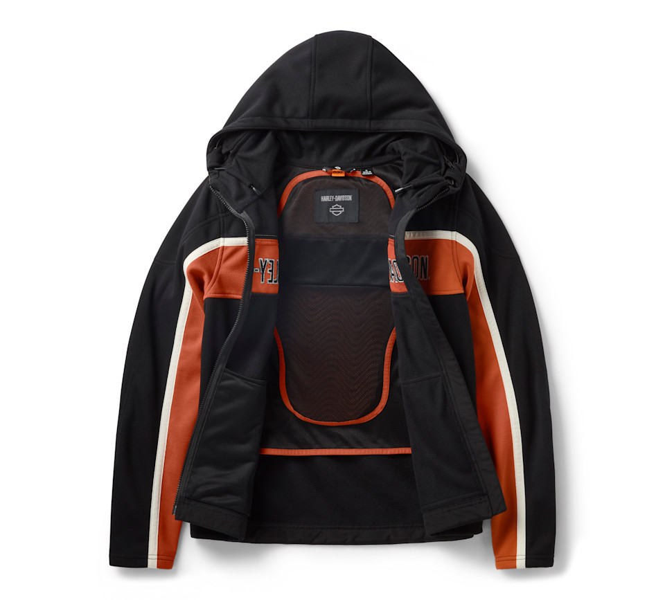• Additional Information: Ce modèle H-D® certifié CE est testé et répond aux exigences en matière d'abrasion, de déchirure et de résistance des coutures. Comprend une protection EN 1621-1 D3O® Ghost™ aux épaules et aux coudes (98104-22VR et 98103-22VR). L'emplacement pour protection dorsale est conçue pour accueillir la protection dorsale D3O® Viper certifiée EN 1621-2 (98317-25VR) vendue séparément. Matériau réfléchissant 3M™ Scotchlite™.