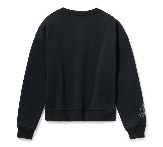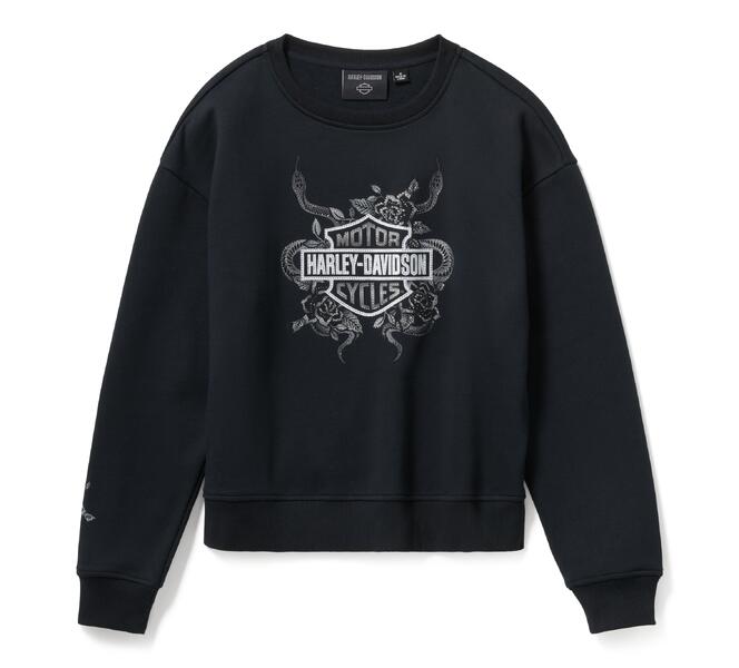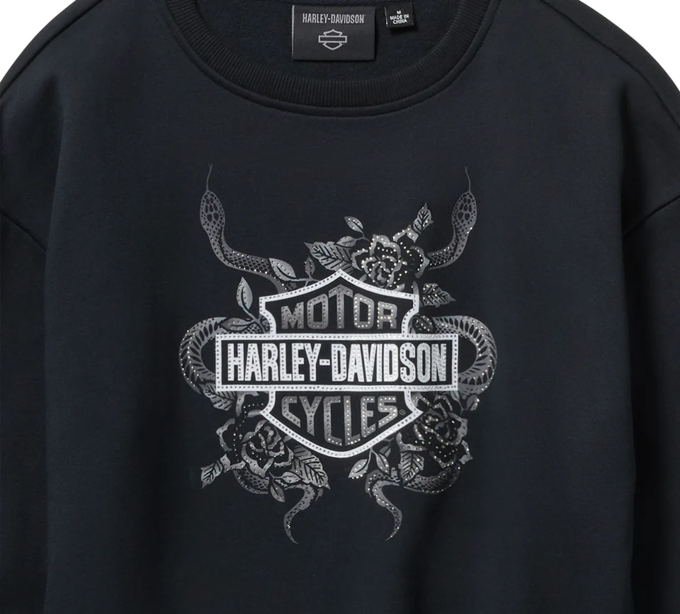 La preuve qu’un sweat peut être confortable avec notre polaire Serpent Rose Bling. Il est confectionné en molleton de coton/polyester avec des épaules tombantes pour offrir une coupe décontractée et une bordure en tricot côtelé pour aider à garder sa forme. Mais ce qui fait que ce modèle pour femmes fait tourner les têtes, ce sont ses motifs saisissants de reptiles et de roses orné de strass.